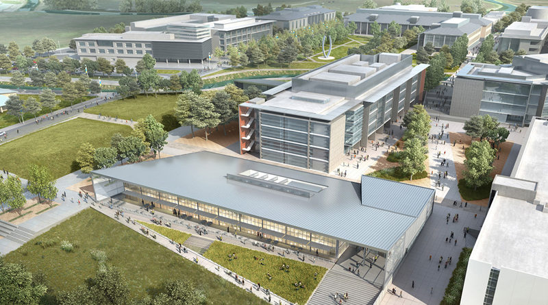 The second phase of the project includes two new state-of-the-art buildings with labs, classrooms and additional study areas. The buildings open in fall 2019 and define the edge of a new quadrangle.