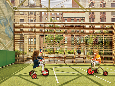 The half-day symposium was organized by the AIA New York Chapter and the city’s Department of Health and Mental Hygiene, and took place at the Center for Architecture in New York. It was intended to examine and elevate a variety of pragmatic and achievable design approaches to advance access to spaces that support physical activity for children. The overarching goals of the architecture firm’s designs are to improve overall student health and prevent obesity, cardiovascular disease and other chronic conditions, affording children the opportunity to become healthy adults, according to Grant.