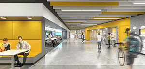 “The new Science and Innovation building is placed directly adjacent to the existing Natural Sciences and Mathematics Building, which is to be renovated in the next construction phase to create a highly prominent science hub and presence in the very heart of the CSUDH campus. This strengthens the current masterplan, which is closely tied to the historic outline of Quincy Jones’ original campus plan, in which clear academic and administrative zones along major pedestrian spines are established,” said Teshima. “The new Science and Innovation building not only emphasizes the overall campus organization and improves wayfinding, but it also creates a gateway, in conjunction with the library expansion, along the main North-South axis as the two tallest buildings on campus.”