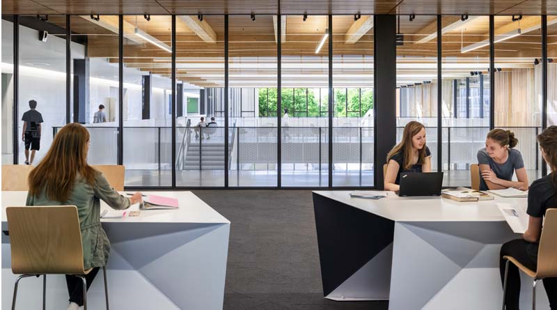 “We wanted to equip Billerica’s students, teachers, and administrators with a space that will support evolving educational models well into the future,” says Brooke Trivas, principal at Perkins and Will. “Flexible classrooms and interdisciplinary spaces allow students to develop skills like communication and collaboration, while providing teachers and administrators the freedom to grow and expand their teaching styles.”