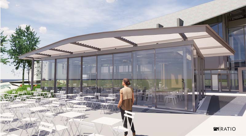 “We’re grateful that Linda and Mike continue to share our vision for enhancing the overall student experience,” said Rose-Hulman President Robert A. Coons. “The gleaming new student union has already exceeded all of our expectations for providing students with relaxation and socialization space, and healthy dining options. The place is busy at all hours; students love hanging out there. This new pavilion will extend those benefits and ensure that our students — who work extremely hard — have the spaces they need to unwind and recharge with their friends.”