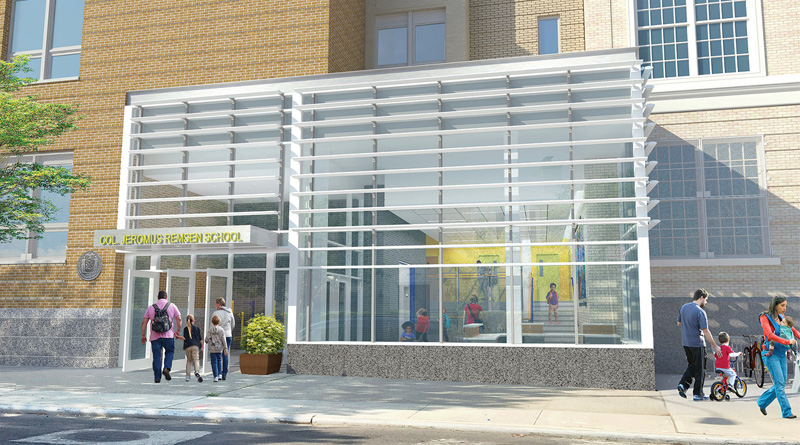The ambitious, $52.4 million, four-story addition will house 26 new classrooms, an entrance lobby, an outdoor play area, a cafeteria, offices and a medical suite. Designed in accordance with the NYC Green Schools Guide and Rating System by New York-based Urbahn Architects, the addition will put a premium on energy efficiency and a healthy environment, whilst preserving the original building’s early 20th century aesthetic.