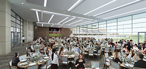 Its size notwithstanding, there are many factors that differentiate the stadium project from those at other high schools. For starters, near one of the end zones, there will be an 8,000-square-foot community events center. The space will seat 500 people at banquet rounds or 700 to 800 if it is set up in a classroom configuration. It also will boast floating walls, so it can be divided into three separate rooms. It will also have a wall of glass overlooking the stadium.