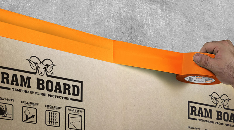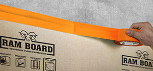Edge Tape is a brand-new solution for hard-working Ram Board users. This tape is strong and durable enough to secure Ram Board floor protection to floors, walls and stairs. It is durable enough to withstand work and foot traffic without requiring re-application which saves both time and money. Edge Tape can be left on surfaces for up to 14 days and still be removed cleanly with no residue left behind. The tape is 2.5-inches wide, making installation easy. Plus, the safety orange color easily identifies the edges of the work area.