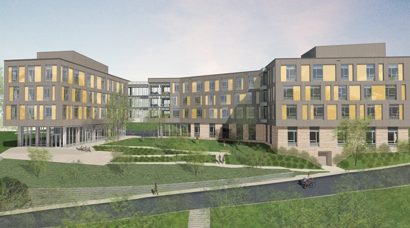 In addition to providing more space and opportunities for collaboration, the new residence hall will be the most sustainable facility on campus. The new residence hall will feature a rooftop solar array that will partially power the residence hall, provide a small amount of carbon offsets against the school’s carbon footprint inventory and will help with peak campus demand management. In addition, the new residence hall will have a 30- to 40-well geothermal system that will heat and cool the building.