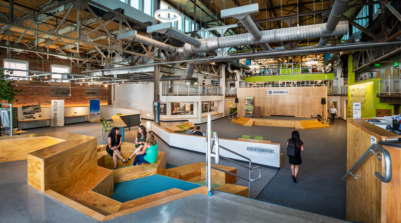 Silverman Trykowski Associates and Greentown Labs have been partners since 2010 when Greentown was established. They have relied on the 13-person architecture and interior design firm through the years to create an urban campus that includes communal resources for their entrepreneurs, such as a state-of-the-art machine shop and electronics lab.