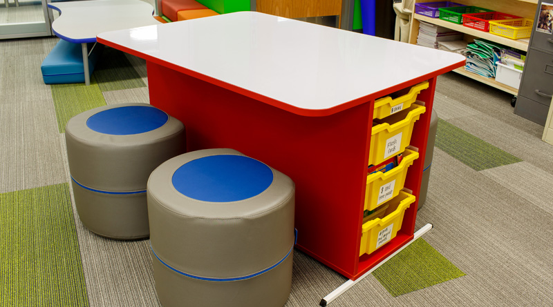 The STEAMSPACE T-Table is a collaborative desk with writable surface and storage. The table is paired with ROCKER OTT seating, perfect for students who benefit from the slight movement it facilitates, which is designed to enhance concentration without disrupting the class. This collection is perfect for both classroom and STEAM spaces. The unique storage base provides 10-12 storage compartments for resources and student work. The writable surface encourages collaboration and sharing of ideas.