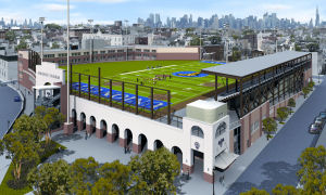 Student-athletes in Union City, N.J., will soon be playing football, baseball and soccer against the backdrop of the New York City skyline thanks to a new $178 million high school that takes athletics to new heights with a rooftop playing field.
