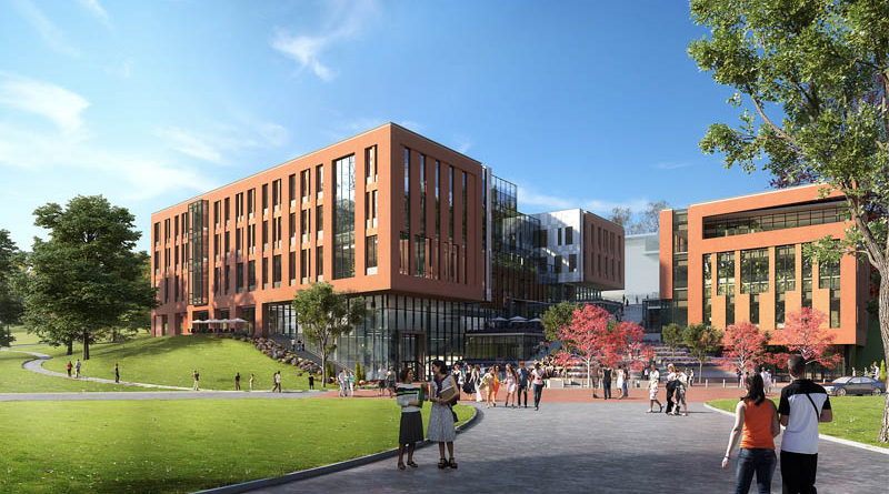 The project will feature two towers, North and South, connected on the ground and first floors by an expansive outdoor stairway and plaza, and by an interior hallway on the building’s ground floor. The majority of the North Tower will comprise classrooms and labs, while the four-story South Tower will primarily house faculty and staff offices and workspaces.