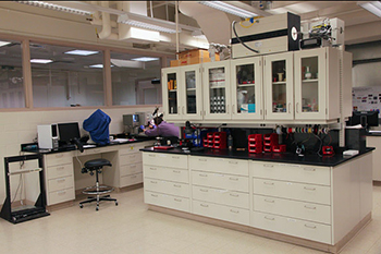 The new 8,000-square-foot mechanical penthouse, one of the renovation’s key elements, serves the building’s laboratory wing. This addition houses customized air handling equipment with full energy recovery wheels and a dedicated unit with dehumidification that serves the building’s new active chilled-beam system. The construction of the penthouse freed up valuable laboratory space in the basement level. MGA worked with a team of engineers and acousticians to successfully diminish sound and vibration from the new rooftop equipment so as not to impact the sensitive experimentation in the laboratories below.