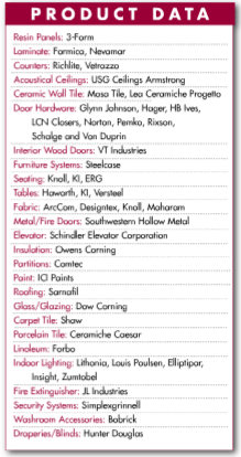 The building has a variety of sustainable features that include floor and ceiling materials, doors, countertops and low volatile organic compound paints. Other sustainable features include:
