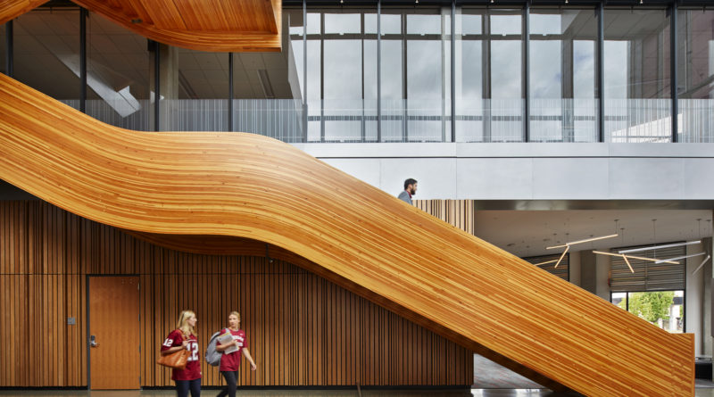 “Like an interior street, the Forum is fronted by key student support elements with multiple ‘storefronts’ for student services, a tiered lecture hall, a media-rich classroom and the Capstone Studio — an upper-division lab providing students and industry partners a place for invention and innovation,” said Tim Richey, project lead and senior associate at SRG Partnership.